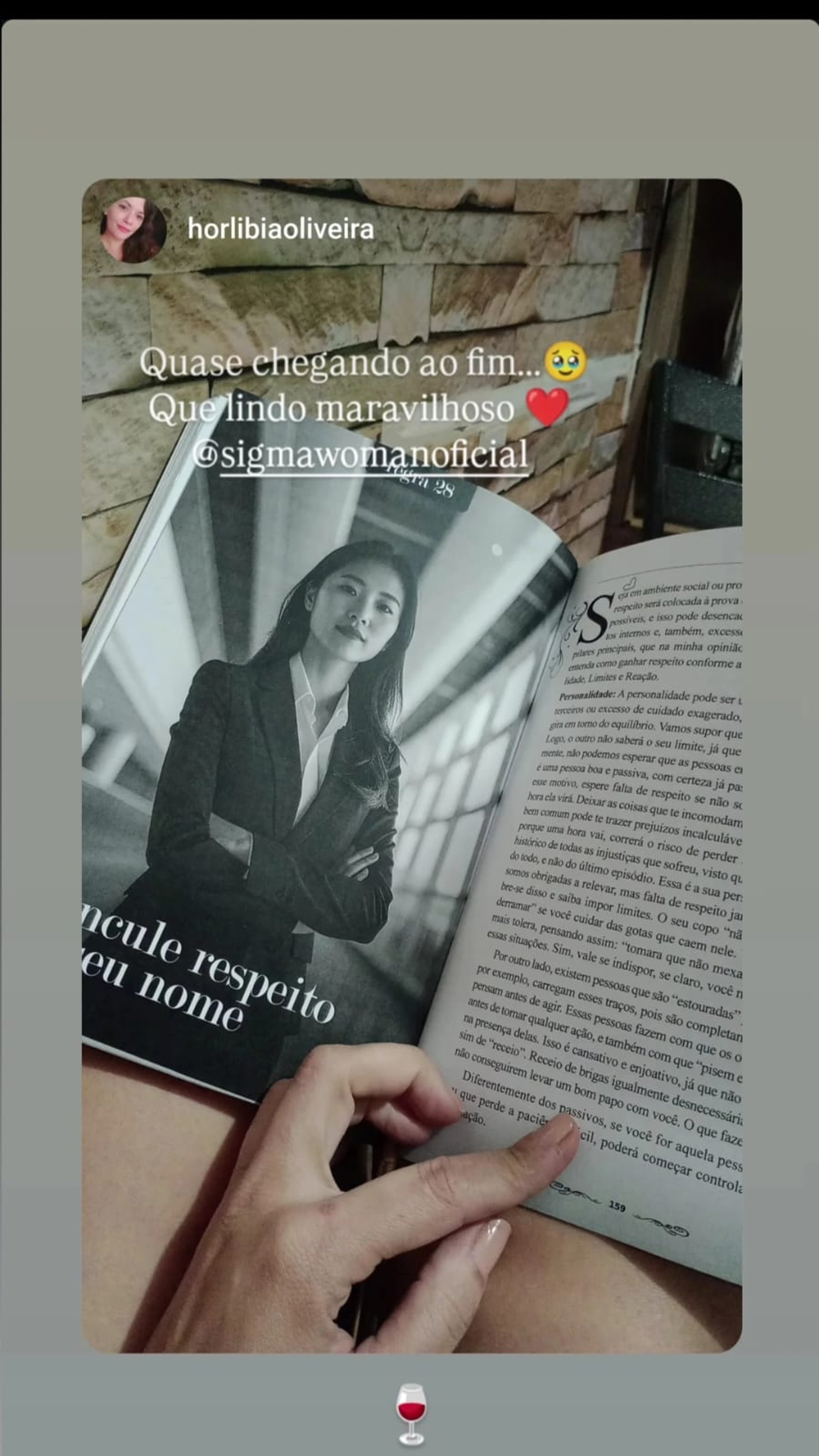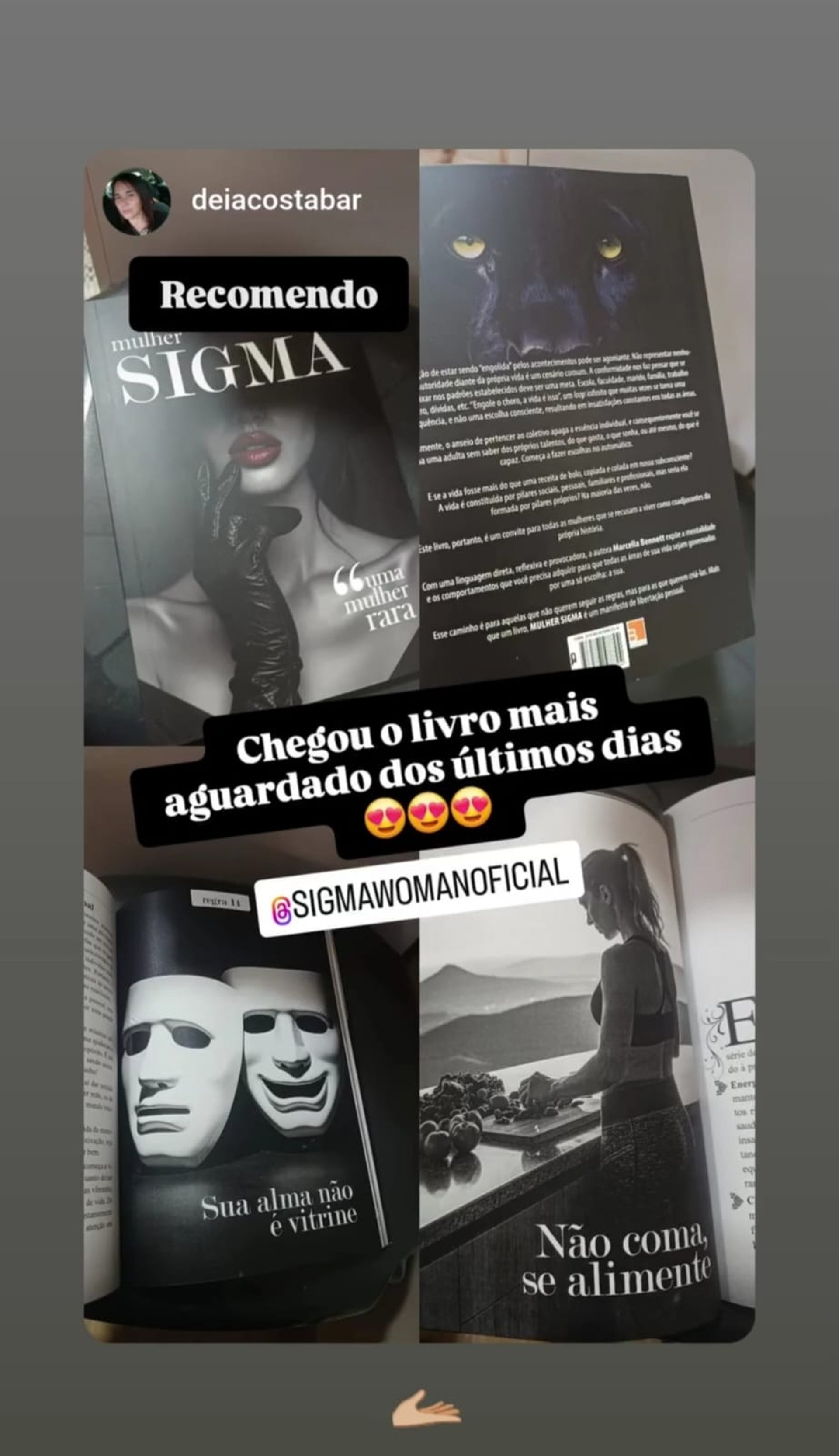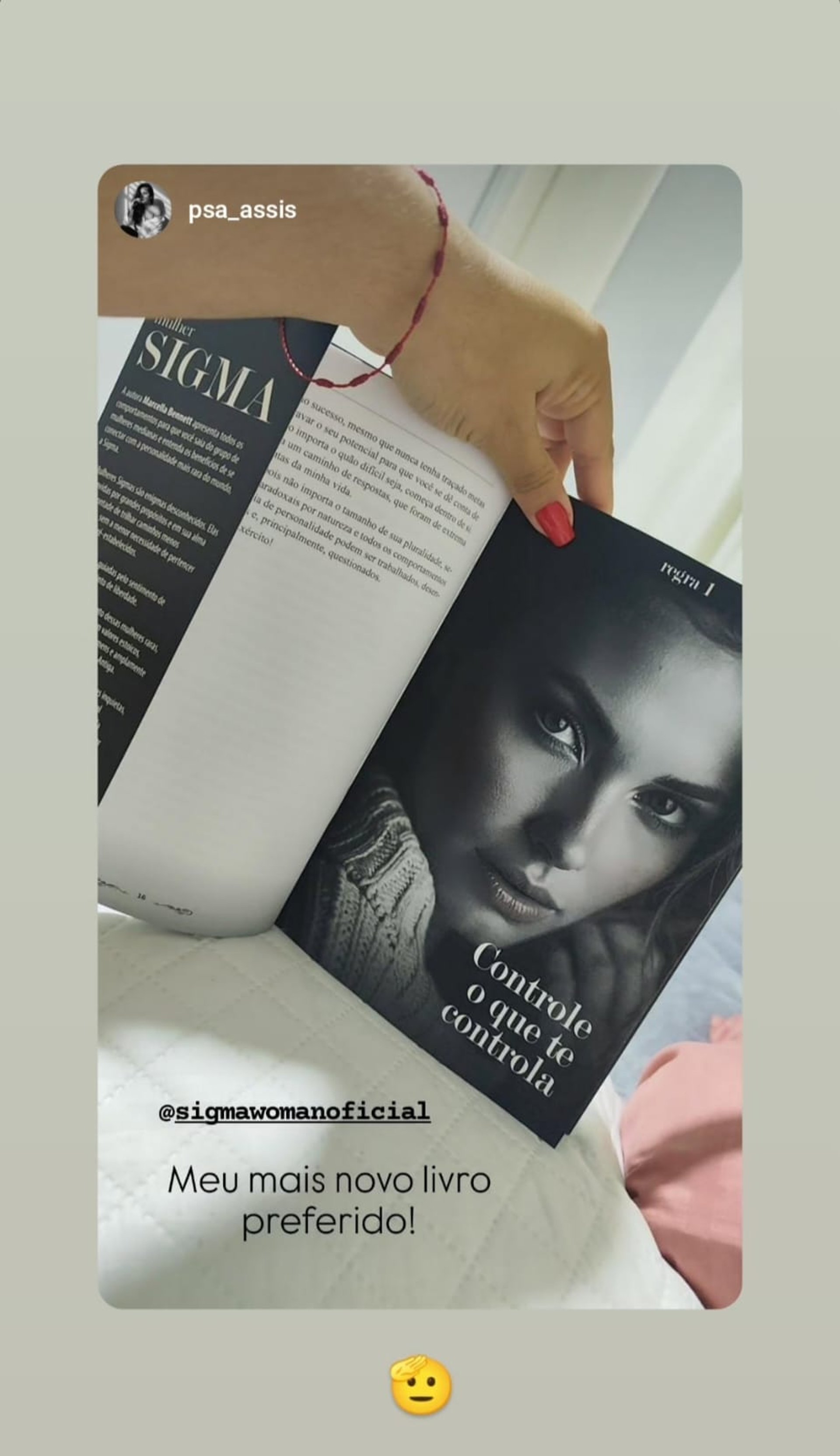 POSTE UMA FOTO COM O LIVRO E MARQUE NOSSO PERFIL OFICIAL @SIGMAWOMANOFICIAL PARA QUE POSSAMOS REPOSTAR VOCÊ EM NOSSOS STORIES.