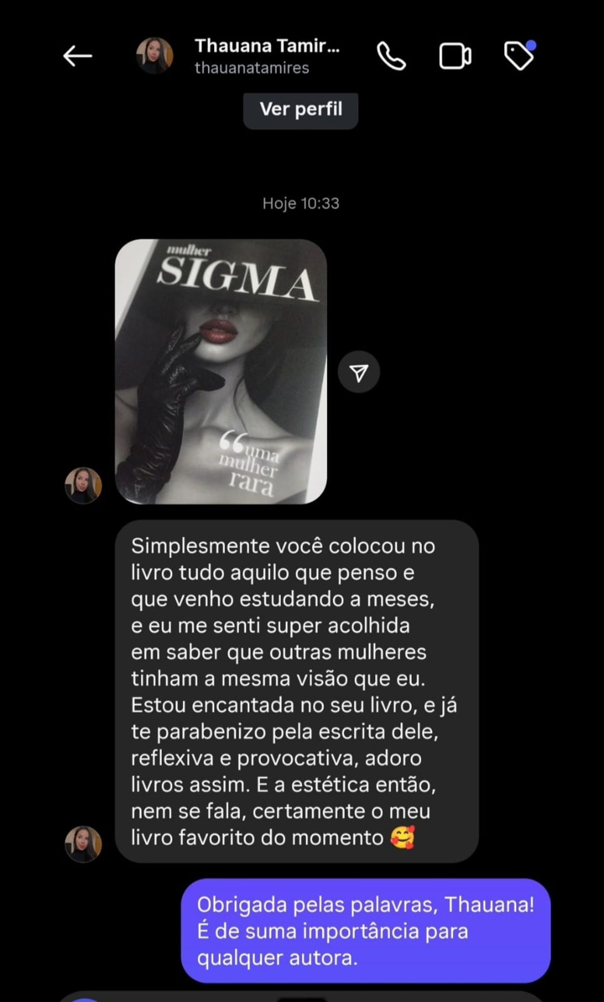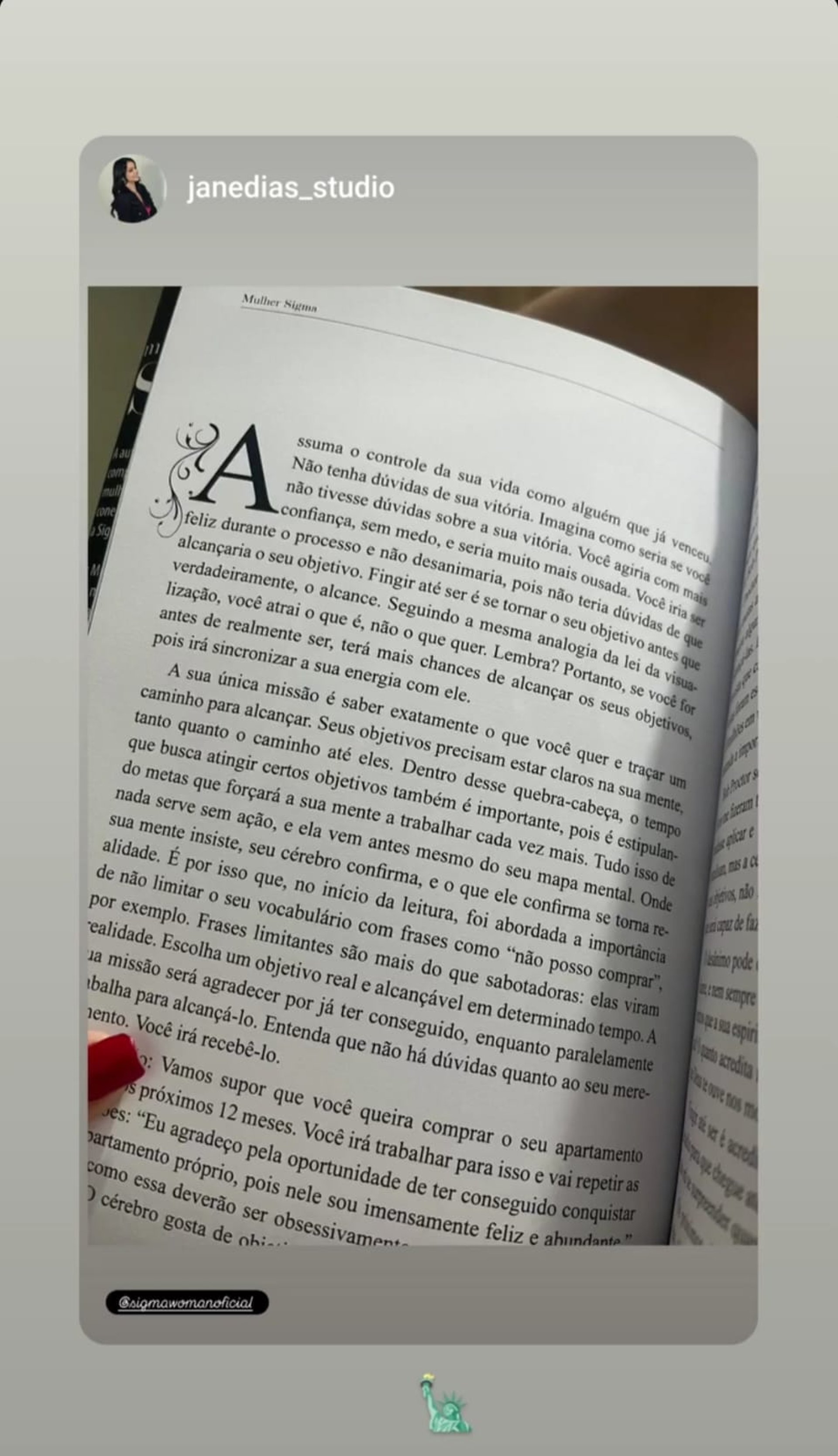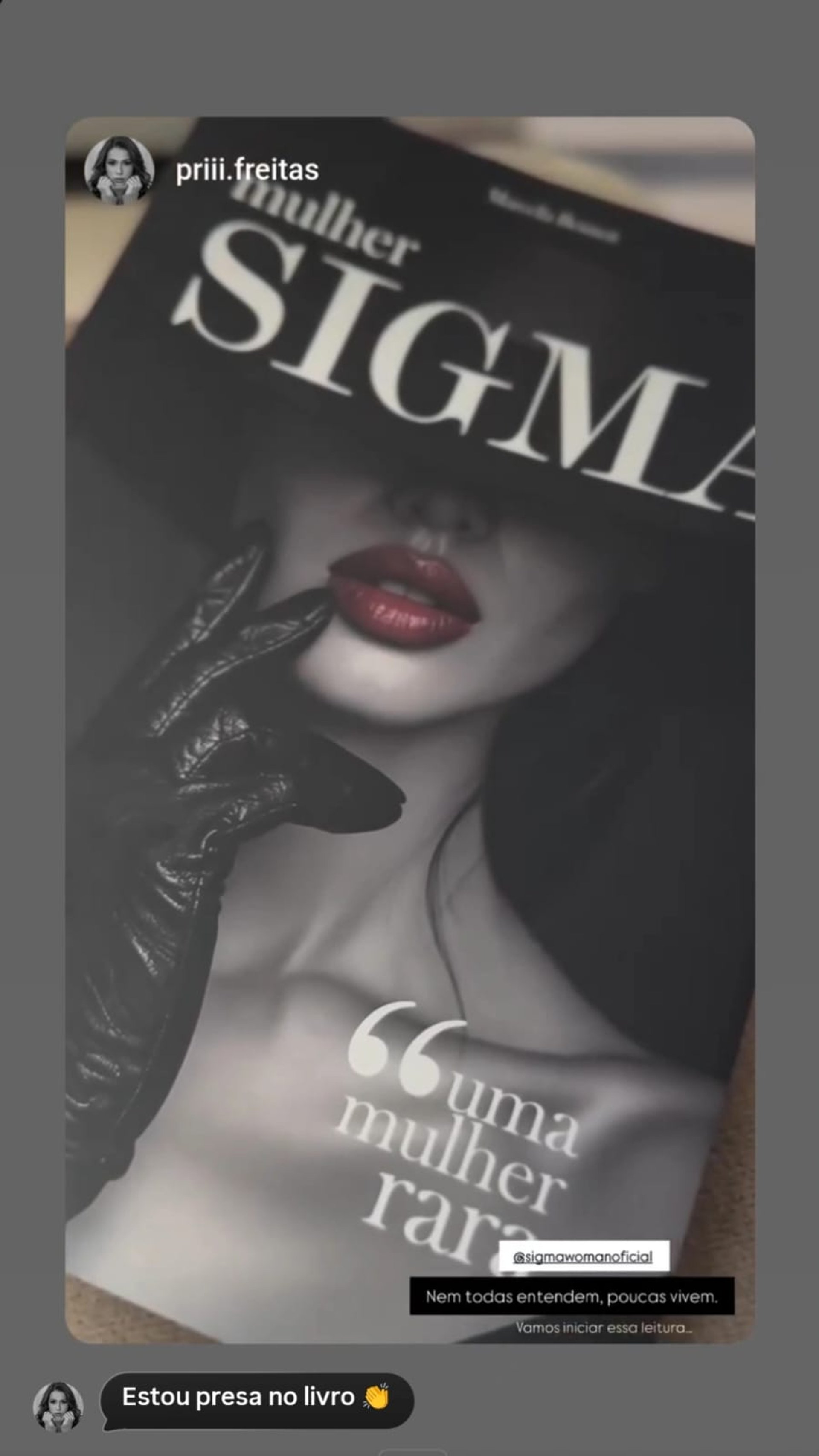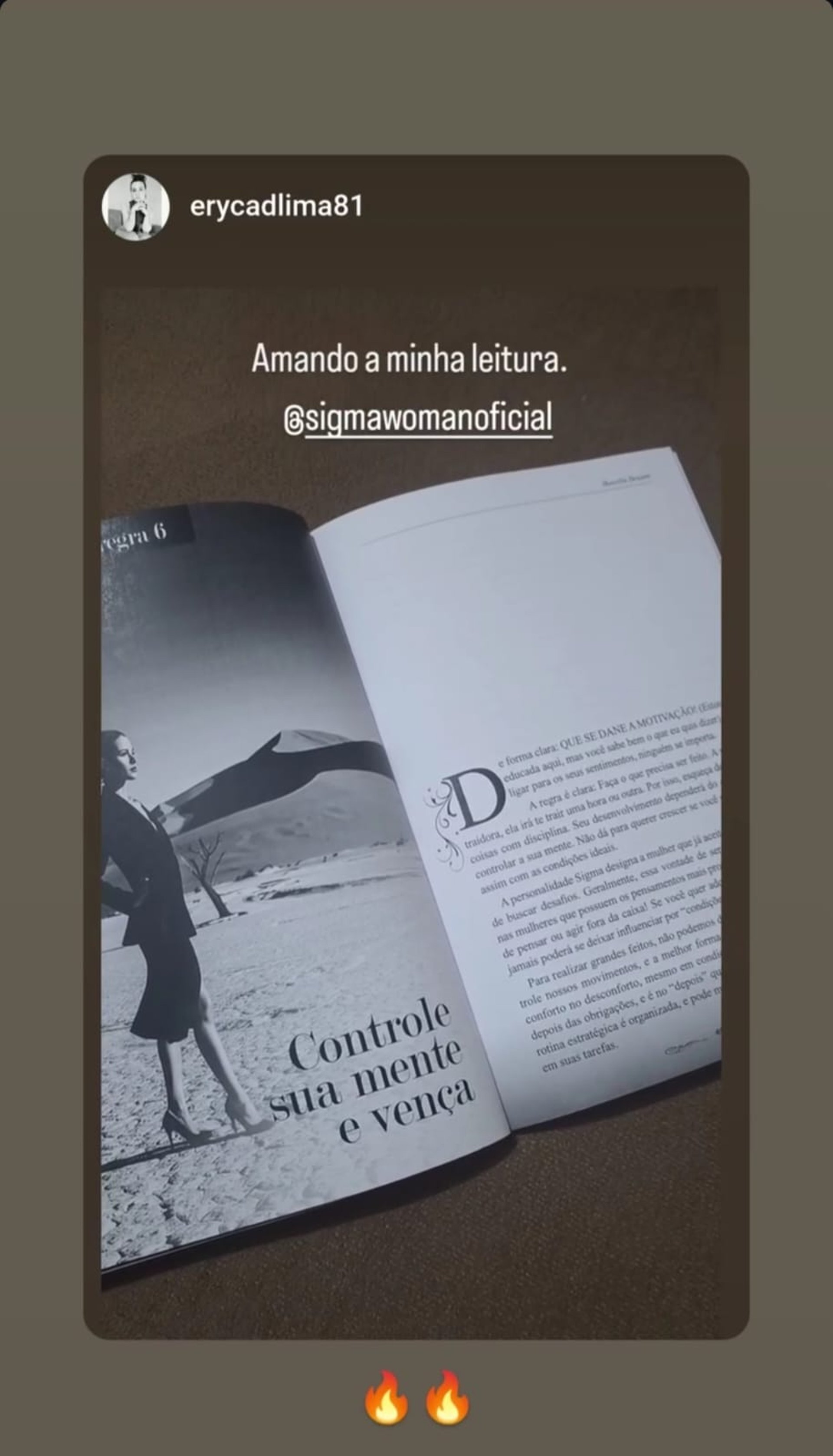POSTE UMA FOTO COM O LIVRO E MARQUE NOSSO PERFIL OFICIAL @SIGMAWOMANOFICIAL PARA QUE POSSAMOS REPOSTAR VOCÊ EM NOSSOS STORIES.